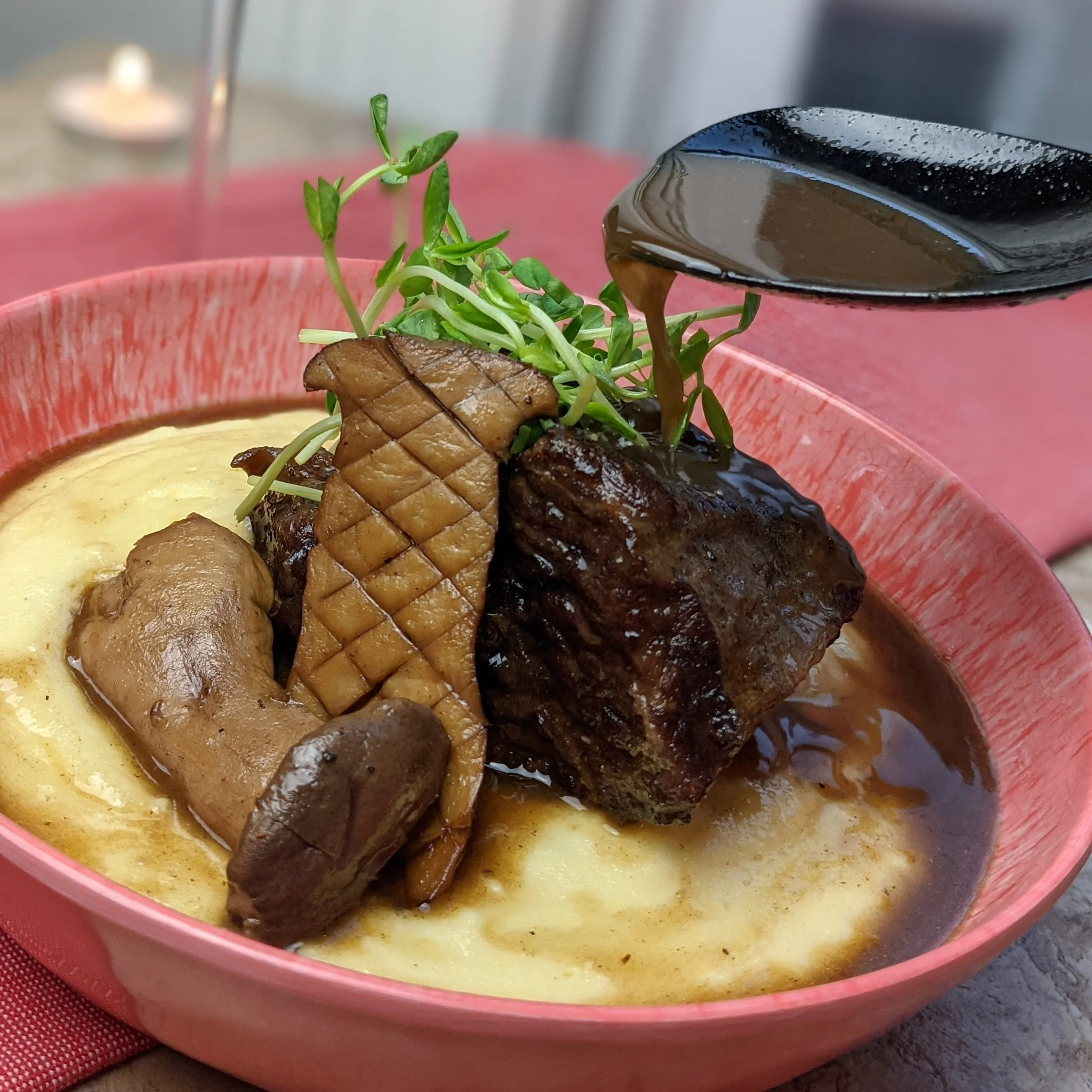 Braised Short Ribs & King Trumpet Mushrooms with Polenta