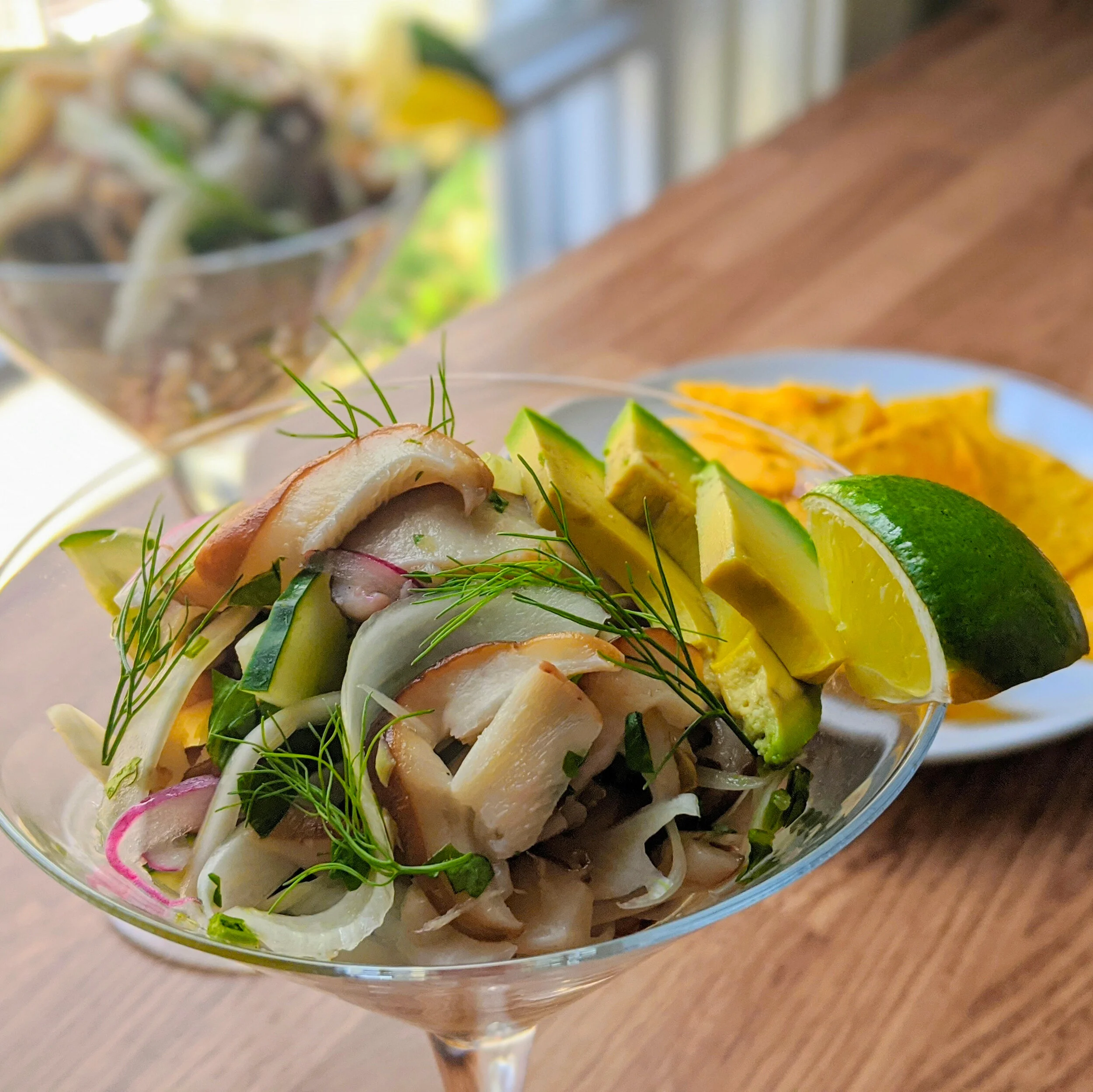 Traditionally made with fresh seafood marinated in citrus and salt, our take on this delicious and tangy recipe uses Shiitake mushrooms which pair exceedingly well with the crunchy vegetables and fragrant herbs. One scoop and you’ll be hooked!